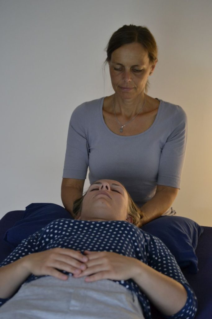 Jeder von uns hat seinen eigenen craniosacralen Rhythmus. Dieser entsteht durch die Filtration des Blutes in einer Hirnkammer im Schädel ( = Cranium ). Das so entstandene Hirnwasser (= Liquor ) läuft über die Gehirn– und Rückenmarkshäute bis zum Kreuzbein ( = Sacrum ). Das Füllen und Leeren in der Hirnkammer läuft wie eine minimale Wellenbewegung durch die Wirbelsäule weiter in den Körper. Ist dieser Rhythmus in irgendeinem Bereich oder einer Struktur nicht zu spüren, könnte die Ursache dafür in einer Blockade im Bindegewebe liegen. Mit Hilfe der CranioSacraltherapie kann durch gezieltem Druck, Zug oder einer bestimmten Bewegung eine Lösung erzielt werden. Meist spürt der Klient das durch eine tiefe Entspannung, die sich über den gesamten Körper verteilt.